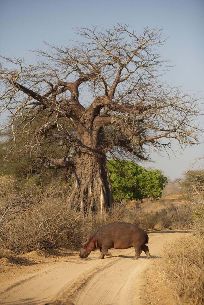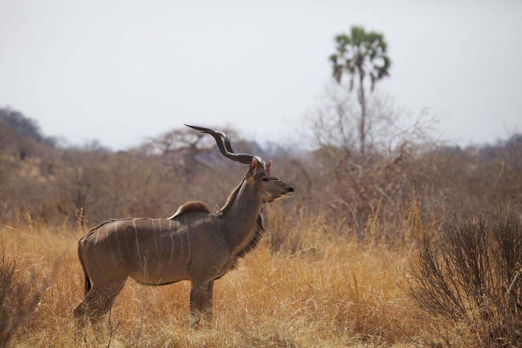 À Ruaha, admirez les paysages spectaculaires de collines, baobabs et rivières habités par une faune exceptionnelle (dont le rivière Ruaha) : éléphants, girafes, lions, léopards, mais aussi lycaons, grand et petit koudous, hypotragues noirs et antilopes rouanne.